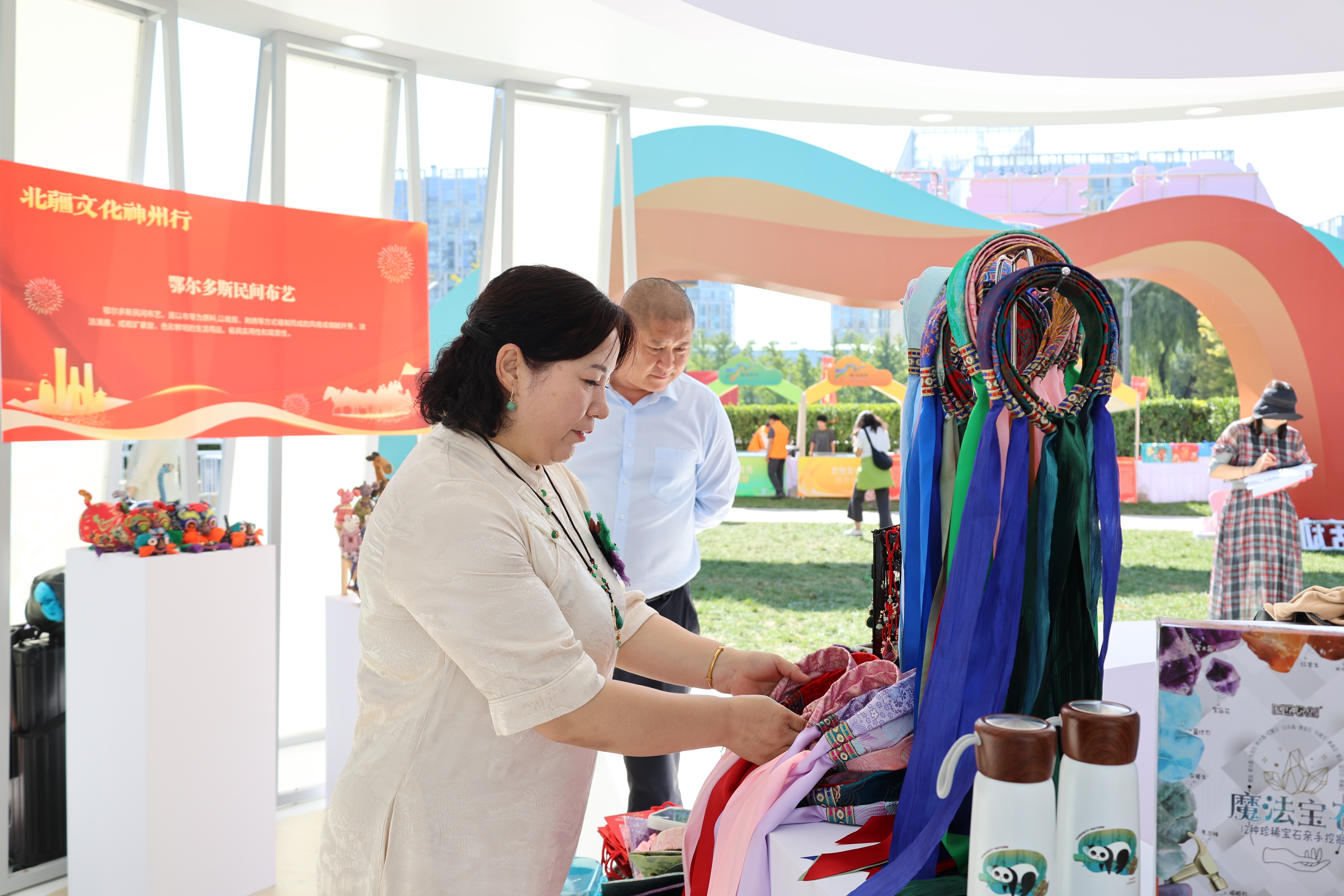 聊到参与此次巡演活动的感受,苗英英满脸自豪:“我们的非遗布艺不仅受北京市民喜欢,连外国朋友都青睐,销量特别好。这些作品一针一线都藏着我们的心意,能借着这个机会向大家展示鄂尔多斯非遗、推广北疆文化,我既骄傲又觉得责任重大。真心希望更多人能走进内蒙古、走进鄂尔多斯,亲身感受这片土地的魅力!”