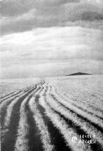 张库大道北出化德县后进入镶黄旗。遥望北去的张库大道,在阅尽繁华、历经沧桑之后,已和草原融为一体,铺路碎石已深深地镶嵌其中。