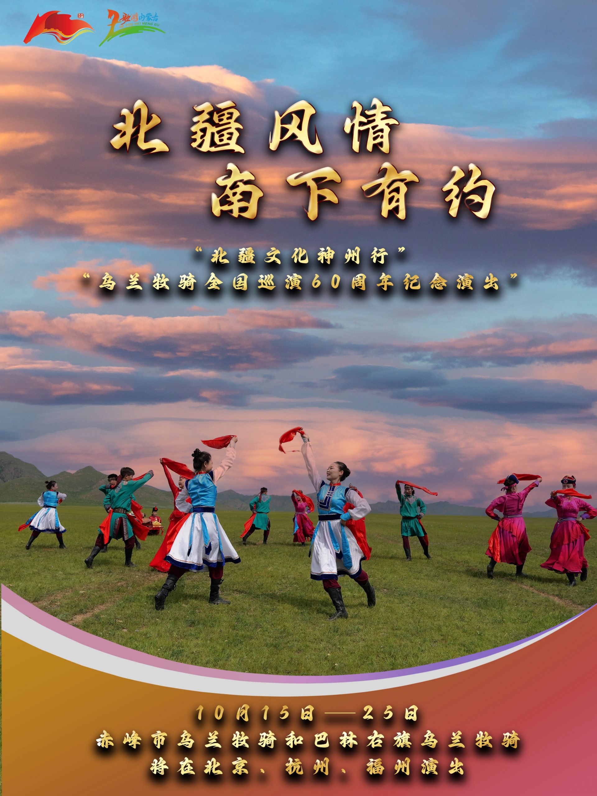 10月15日-25日,赤峰市乌兰牧骑、巴林右旗乌兰牧骑将在北京市、杭州市、福州市开展13场“北疆文化神州行”——乌兰牧骑全国巡演60周年纪念演出。