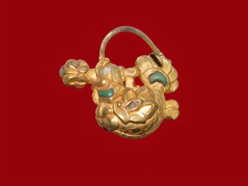内棺开启瞬间,考古队员的呼吸都为之一滞——这个沉睡了千年的契丹女子逐渐露出了真容,随身佩戴的首饰精美无比,金坠玛瑙墨晶璎珞、摩羯形金耳坠、镶水晶石蟾蜍纹金戒指……层层剥离的7件丝织华服闪耀着昔日荣光,其中一件罗地彩凤裙上对飞的鸾凤,正是唐代流行的纹样。