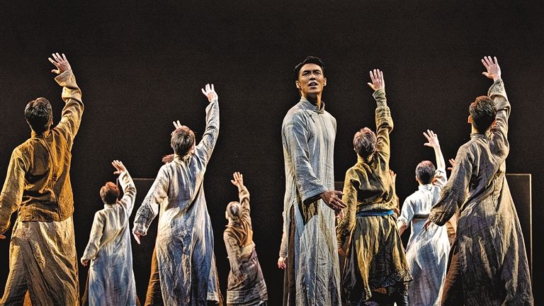 近年来,红色题材的舞台艺术作品得到众多年轻观众的关注与讨论,《觉醒》也不例外。通过观察和分析年轻观众的评价可以得知,年轻一代观众甚至更容易被红色题材中家国情怀、理想信念等方面的表现而感动。《觉醒》的成功提示我们:红色题材的艺术创作不必拘泥于既定的叙事模式,可以更具创新性的叙事与美学手法,唤醒年轻观众对历史与现实的思考。(图片为当代舞《觉醒》剧照)