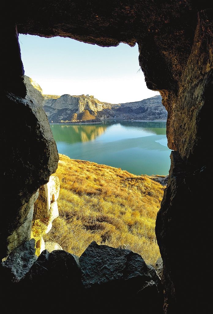 峡谷在这里有一个侧身,两岸拉拽而来,河水的转折并不低沉,抑压使河水狰狞起来,对峙的高崖却踯躅,一崖挨着一崖,峰崖拥趸,洄悬激注。左岸是绵延的丘陵,缘崖南下,长城迤逦,岸上山缺连堑,关河从东来插入黄河,因是渡口,将这个山口称为关河口,晋西北并不深厚的黄土被水流深切之下,石槽陷铁如匣,形成一道深深的石河。长城堡寨簇拥,一直迤逦至雁门关,表里山河处处被山峦挡住,紫塞也时时被遮断。北进是土默川的尾翼,一望无际,黄河上中游的分界处正是著名的海生不浪文化遗址,一座古城露出来,黄河温地有海海漫漫之感,敞开温暖的怀抱。很喜欢这里山河交错的伟岸与阔朗。右岸则是鄂尔多斯高原,库布其沙漠南下时,被准格尔山地阻挡,留下了风被束缚时羁绊形成的沙锥子,低处有小小的洼子,芦苇弥长,榫接着浩瀚的库布其沙漠。一边是沙漠草原毗连了山地,一边是土默特平原襟带了黄土高原。黄河便是楚河汉界,泾渭分明,低低地沉下去,准格尔黄河大峡谷横空出世。